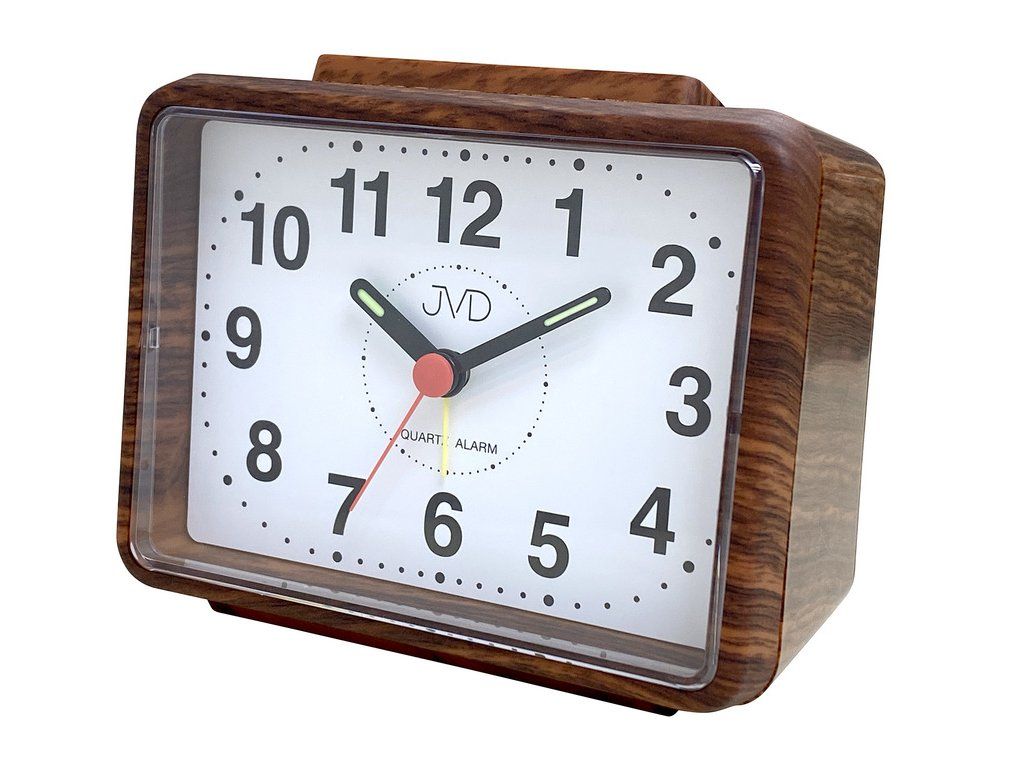 Analogový budík JVD SR307.5 hnědý quartzový strojek, arabská čísla