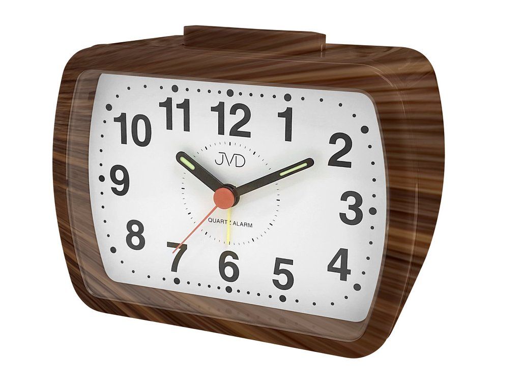 Analogový budík JVD SR309.8 hnědý quartzový strojek, arabská čísla