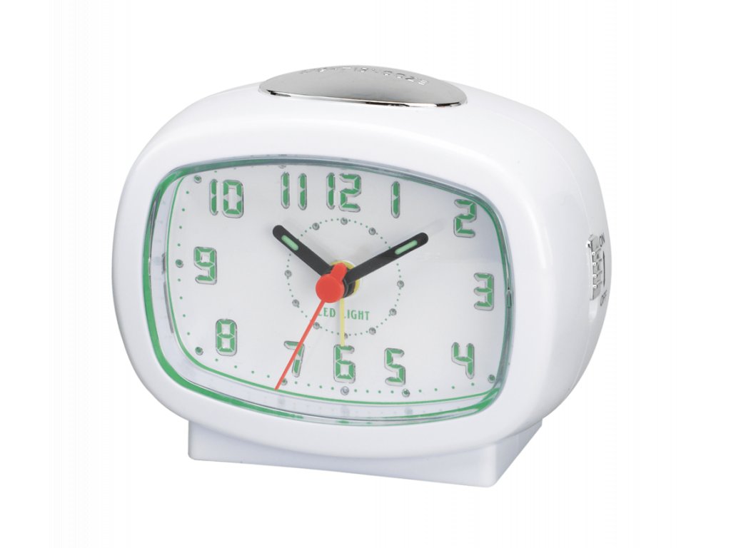 Jeho analogový číselník s arabskými čísly zajišťuje jednoduchou orientaci v čase. Speciální funkcí tohoto budíku jsou jeho LED svítící čísla - pouze při stisku opakování. Pro napájení postačují běžné baterie typu AA, což znamená bezstarostný provoz bez nutnosti připojení k elektrické síti.