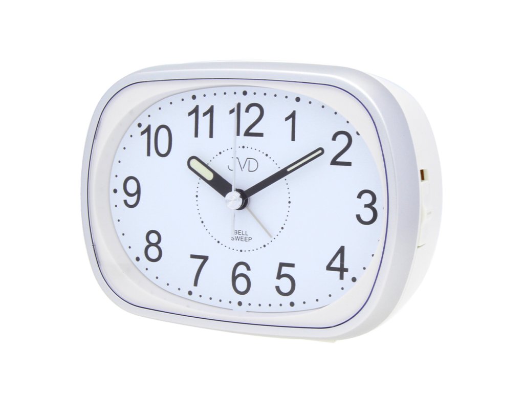 Analogový budík s tichým chodem JVD SRP836.5 bílý quartzový strojek, tichý chod