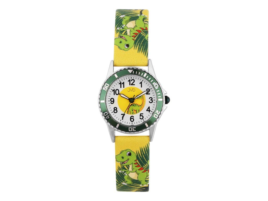 Chlapecké náramkové hodinky s motivem dinosaurů JVD J7228.1 žluté quartzový strojek, arabská čísla