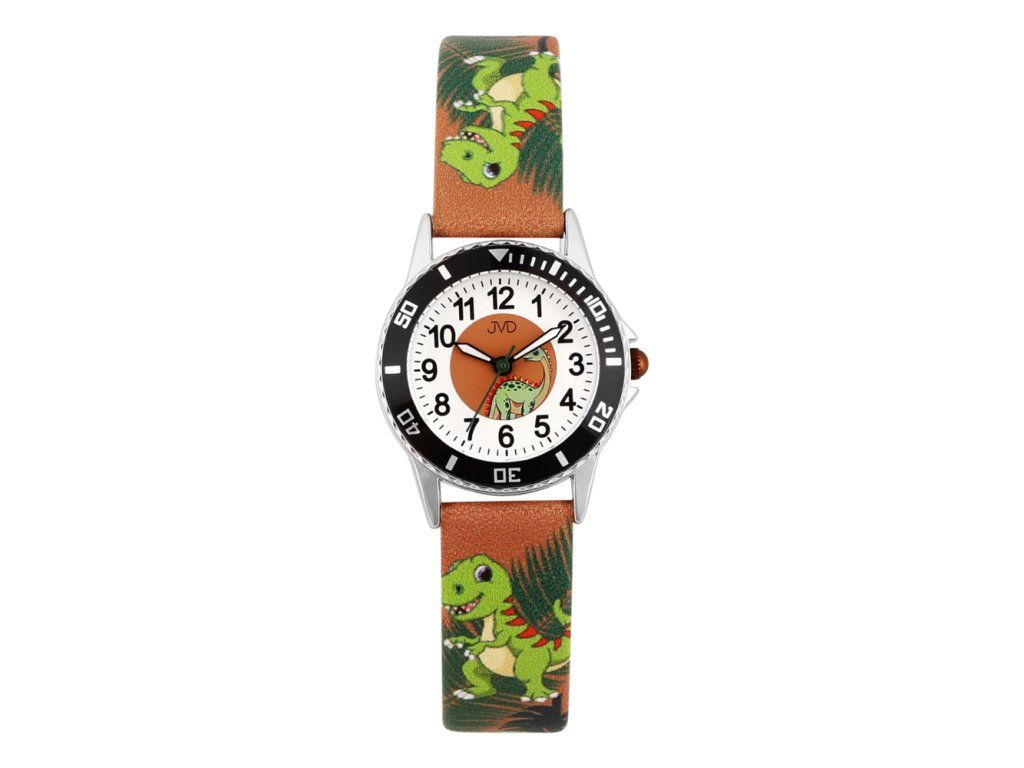 Chlapecké náramkové hodinky s motivem dinosaurů JVD J7228.3 hnědé quartzový strojek, tichý chod