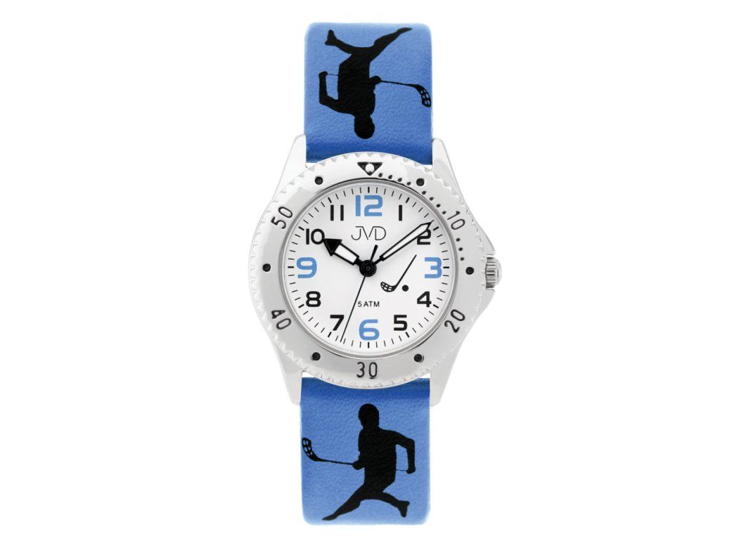 Chlapecké náramkové hodinky s motivem sportu JVD J7209.2 modré quartzový strojek, arabská čísla