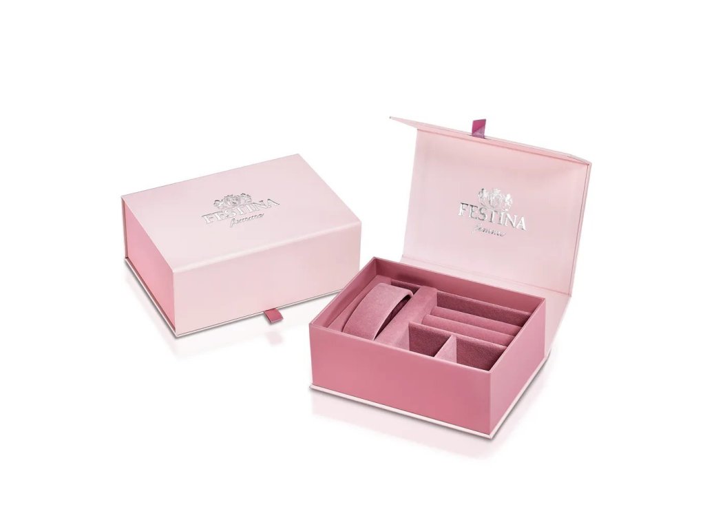 Kovový tah z kvalitní oceli ve stříbrné barvě je zakončen překlápěcí sponou, která zajišťuje bezpečné a pohodlné zapínání. Náramkové hodinky dámské Festina jsou tak nejen krásné, ale i maximálně komfortní při celodenním nošení.