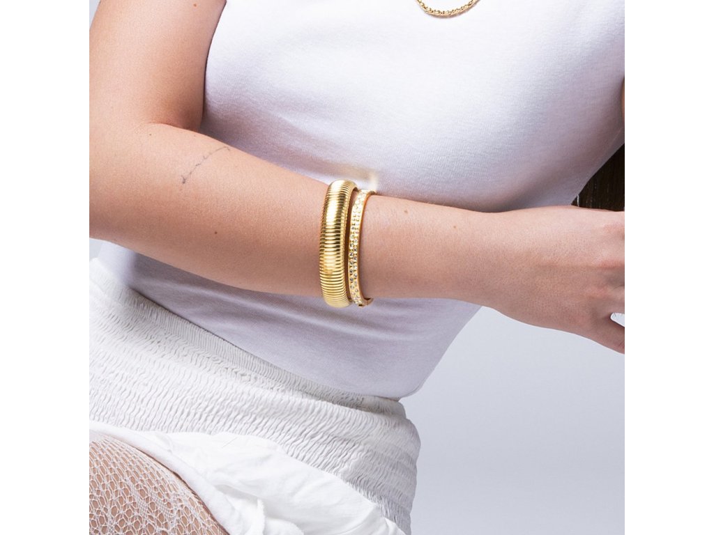 Náramek ve zlaté barvě je součástí kolekce Urban Woman a jeho pružná délka 18,5 cm zajišťuje pohodlné nošení.