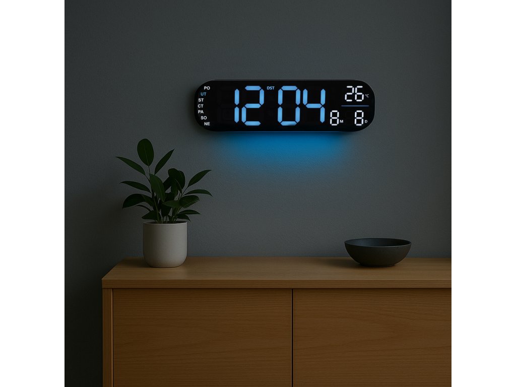Digitální hodiny JVD DH5502.2 představují ideální spojení precizního zpracování, funkčnosti a moderního designu. Tyto digitální hodiny na zeď se stanou nejen výrazným doplňkem každého interiéru, ale zároveň praktickým pomocníkem do domácnosti, kanceláře či veřejných prostor. S rozměry 350 x 100 x 30 mm patří mezi velké digitální nástěnné hodiny, které zaručují výbornou čitelnost i z větší vzdálenosti.