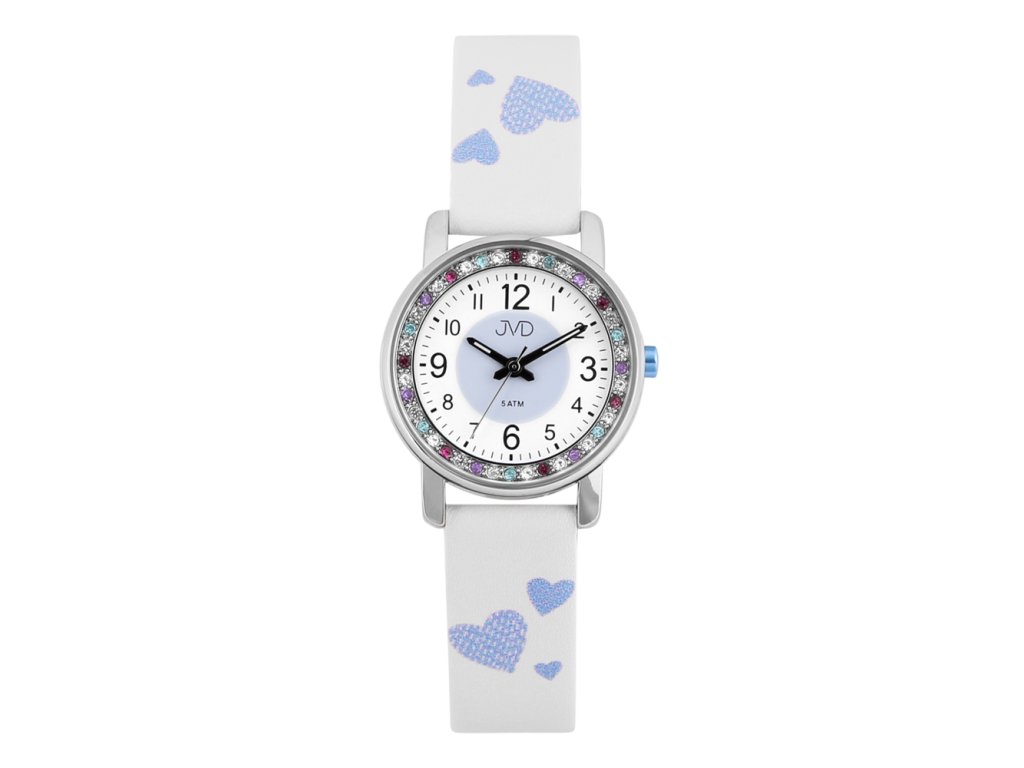 Dívčí náramkové hodinky s motivem srdíček JVD J7237.2 modré quartzový strojek, arabská čísla
