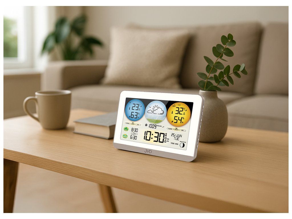 Domácí meteorologická stanice JVD RB3409 rádiem řízená, předpověď počasí