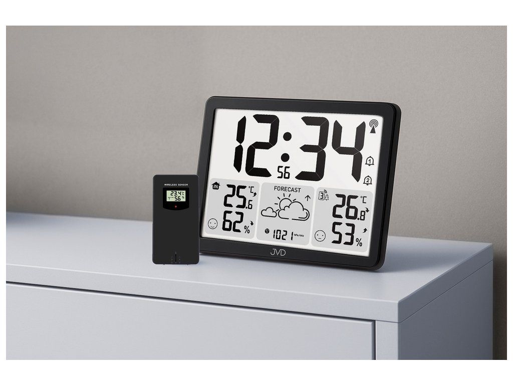 Domácí meteorologická stanice JVD RB3569 rádiem řízená, předpověď počasí