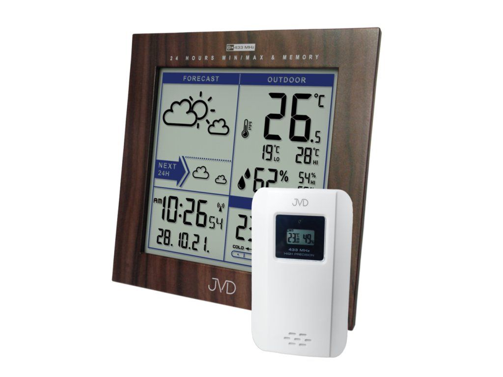 Moderní domácí meteostanice JVD RB9233.2 v elegantním provedení imitace dřeva je ideálním pomocníkem pro každého, kdo chce mít přehled o aktuálním počasí i přesném čase. Tato digitální meteorologická stanice kombinuje funkčnost, přehledný design a širokou škálu praktických funkcí, které vám usnadní denní plánování a zlepší komfort každodenního života.