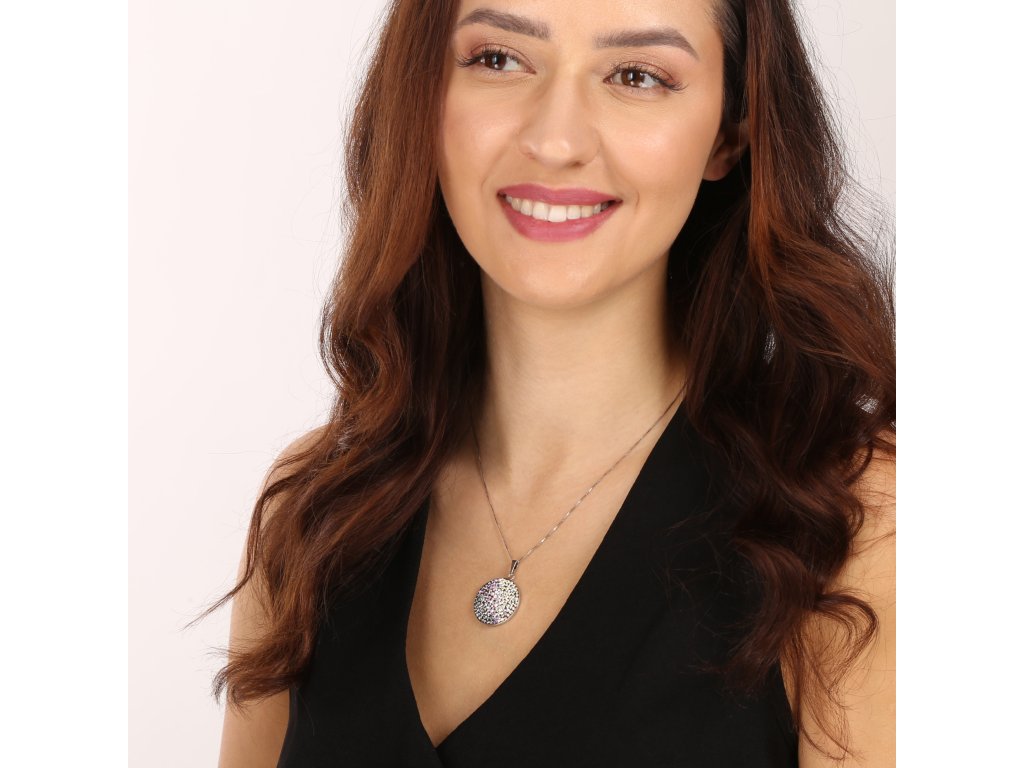 Hledáte šperk, který dokonale doplní váš outfit a přinese jemnou jiskru do vašeho vzhledu? Stříbrný kulatý přívěsek s kombinací mix barevných krystalů Swarovski je ideální volbou pro ty, kteří touží po eleganci a nadčasovém stylu. Přívěsek tvaru srdce Swarovsi je ztělesněním jemnosti a krásy, které si zamilujete.