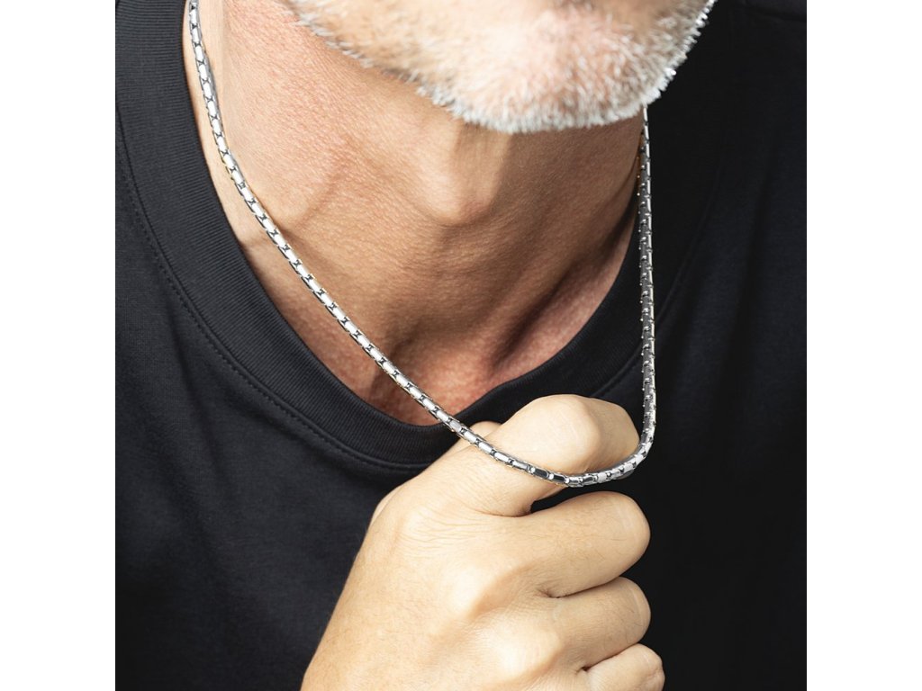 Pánský řetízek LS2367-1/1 zaujme svým jedinečným a dynamickým vzhledem. Tento typ řetízku je oblíbený pro svou pevnost a estetiku, díky čemuž je ideálním doplňkem. Řetízek má délku 55 cm a je vybaven zapínáním na karabinu, které zajišťuje bezpečné a snadné odepnutí i zapnutí náhrdelníku.