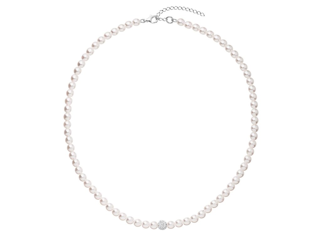 Perlový náhrdelník ze syntetických perel s krystaly Preciosa 32063.1 bílý rhodiované stříbro, syntetická perla, Preciosa krystaly