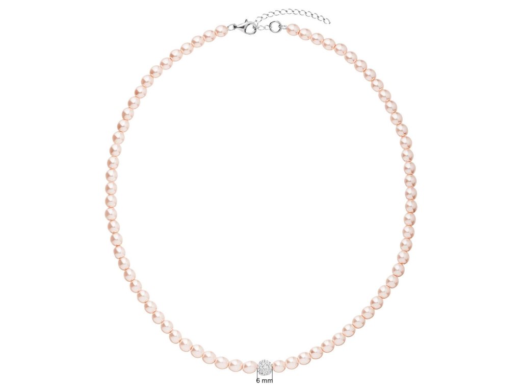 Perlový náhrdelník ze syntetických perel s krystaly Preciosa 32063.3 růžový rhodiované stříbro, syntetická perla, Preciosa krystaly