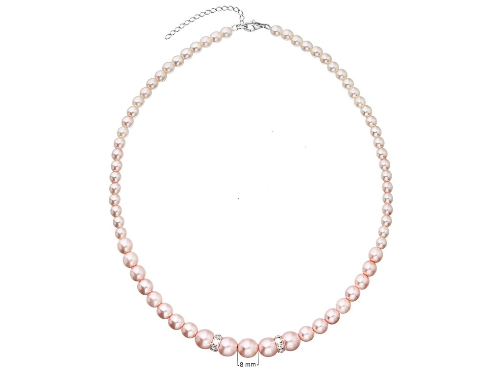 Perlový náhrdelník ze syntetických perel s krystaly Swarovski 32036.3 růžový rhodiované stříbro, syntetická perla, Swarovski krystaly