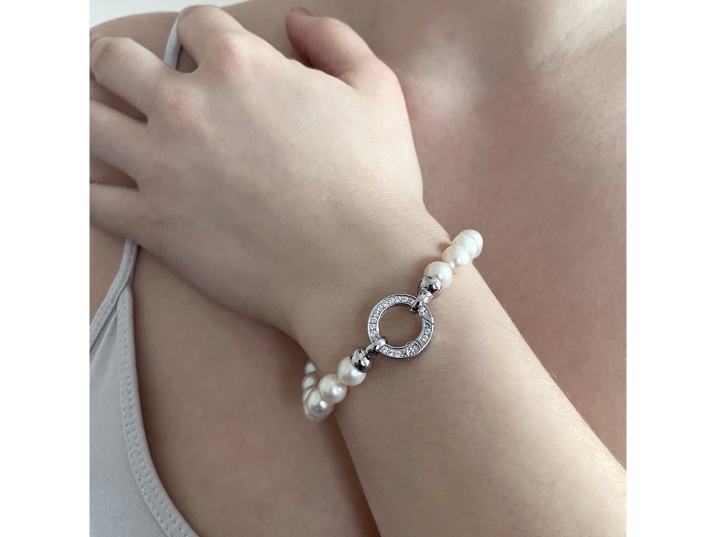 Perlový náramek z říčních perel 23003.1 stříbrný říční perly, zirkony