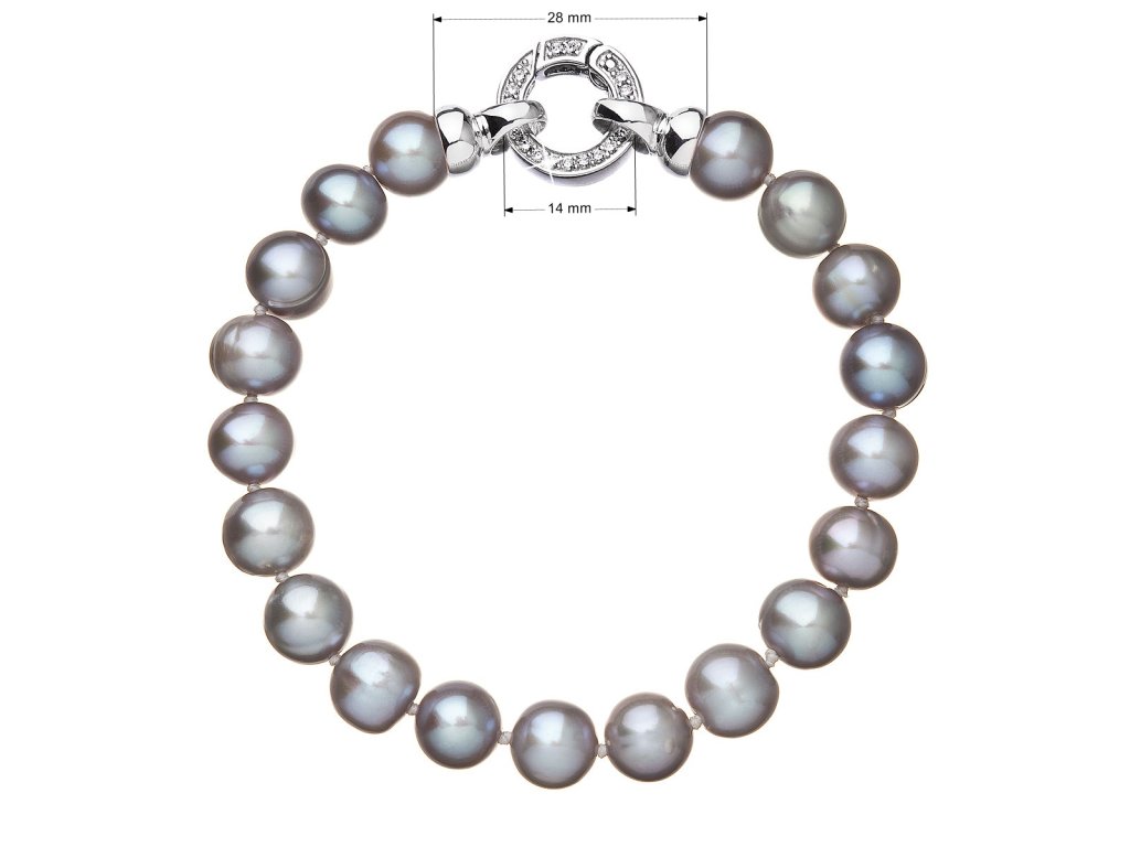 Perlový náramek z šedých říčních perel 23010.3 stříbrný říční perly, zirkony