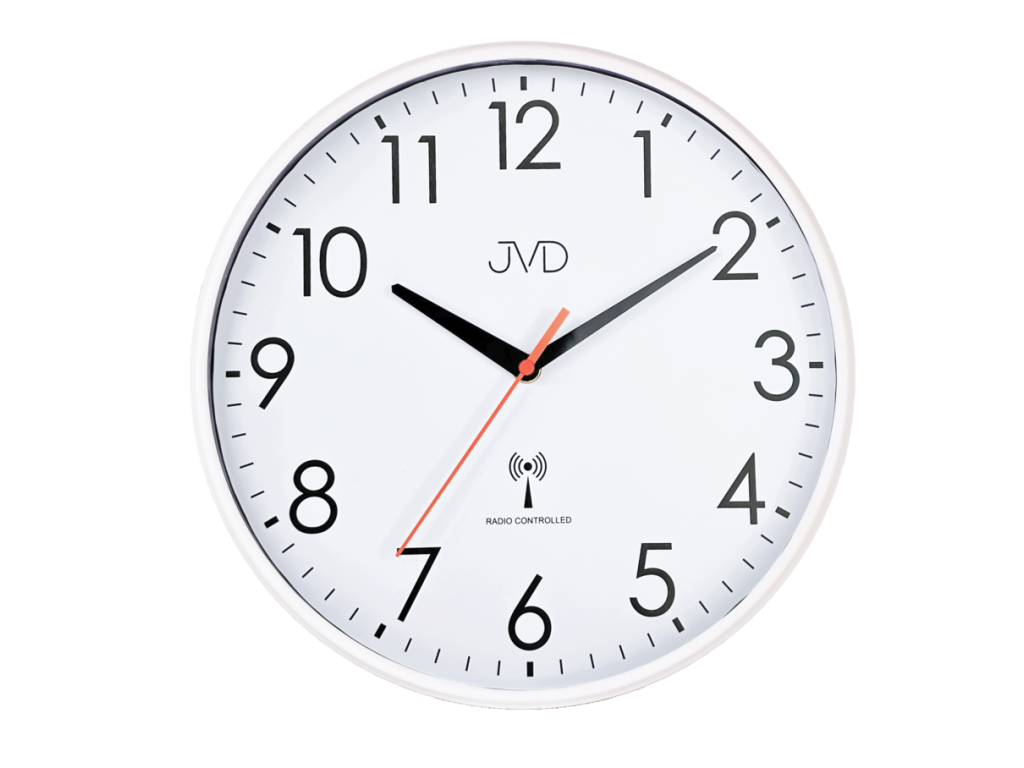 Rádiem řízené nástěnné hodiny JVD RH502.3 bílé quartzový strojek, tichý chod