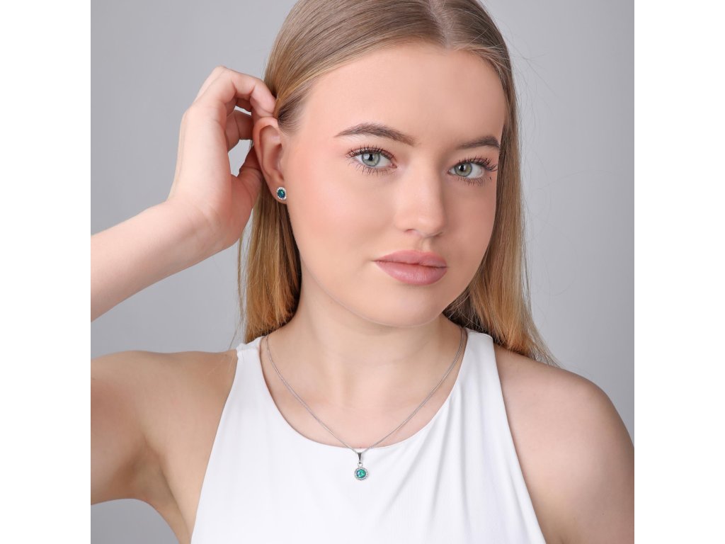 Sada šperků se syntetickým opálem a krystaly Preciosa 39160.1 zelená Rhodiované stříbro, syntetický opál