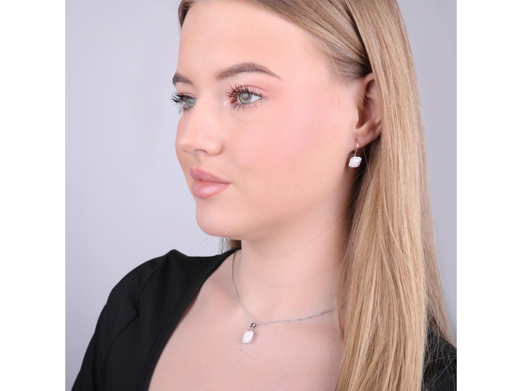 Sada šperků se syntetickým opálem a krystaly Preciosa 39175.1 bílé rhodiované stříbro, syntetický opál, krystaly Preciosa