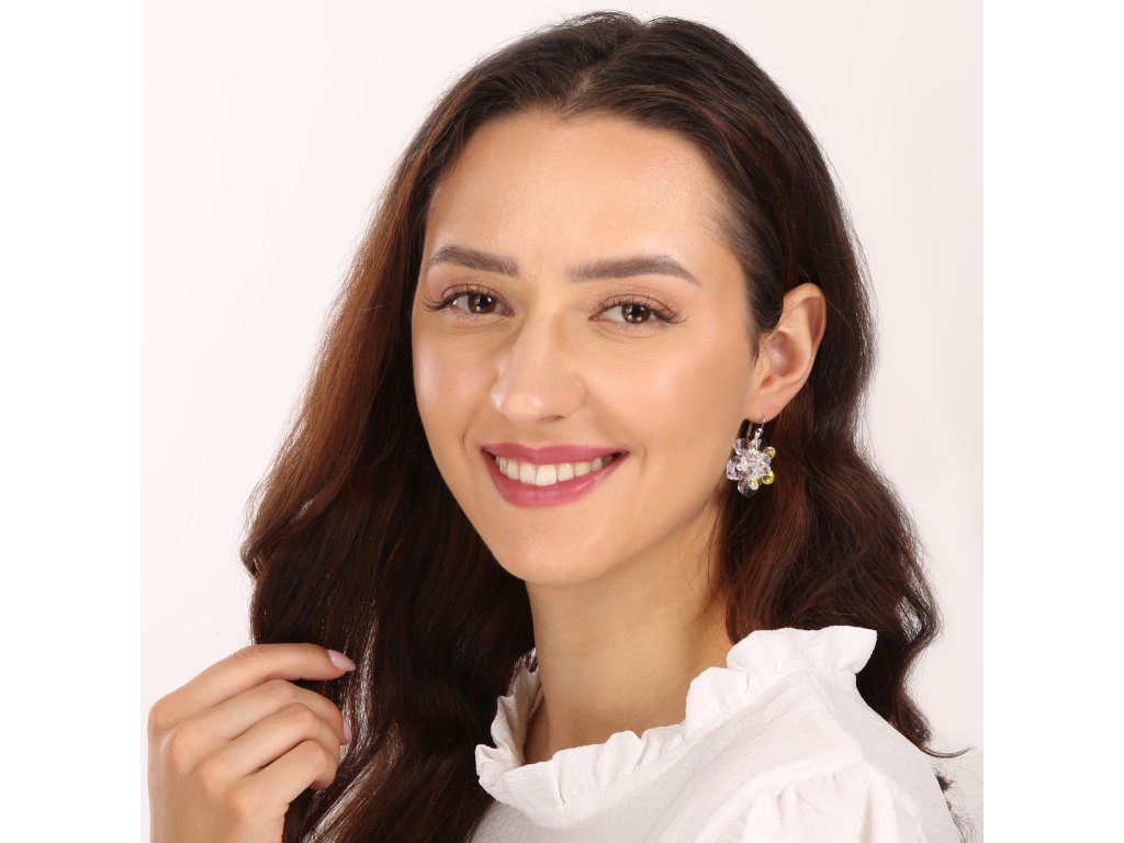 Hledáte elegantní šperk, který rozzáří každý váš outfit? Tyto nádherné visací náušnice s krystaly Swarovski ve tvaru kytiček jsou tou pravou volbou! Krystaly se třpytí v duhových odlescích a zachycují světlo z každého úhlu – prostě pohádkový efekt, který nikdo nepřehlédne. Díky rozměrům 37 x 25 mm se budou náušnice při každém pohybu krásně třpytit a dokonale tak doplní váš outfit.