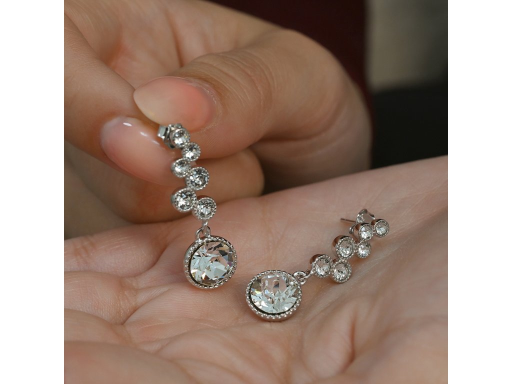 Hledáte elegantní šperk, který rozzáří každý váš outfit? Tyto nádherné visací náušnice s kulatými krystaly Swarovski jsou tou pravou volbou!