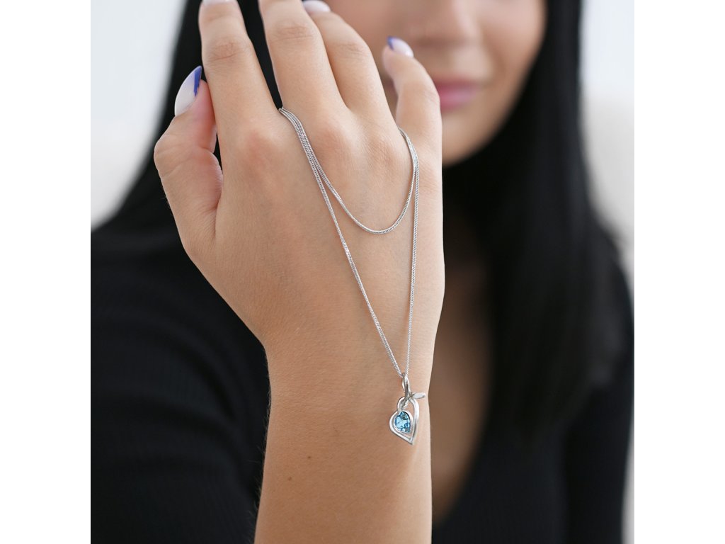 Tento nádherný klenot spojuje tradiční řemeslnou práci se špičkovým designem. Jeho srdcem je přívěsek ve tvaru srdce, který září díky Swarovski krystalům. Tyto krystaly, překrásně modré a jemně se třpytící, dodávají náhrdelníku nejenom luxusní vzhled, ale také jedinečnou jiskřivou energii.