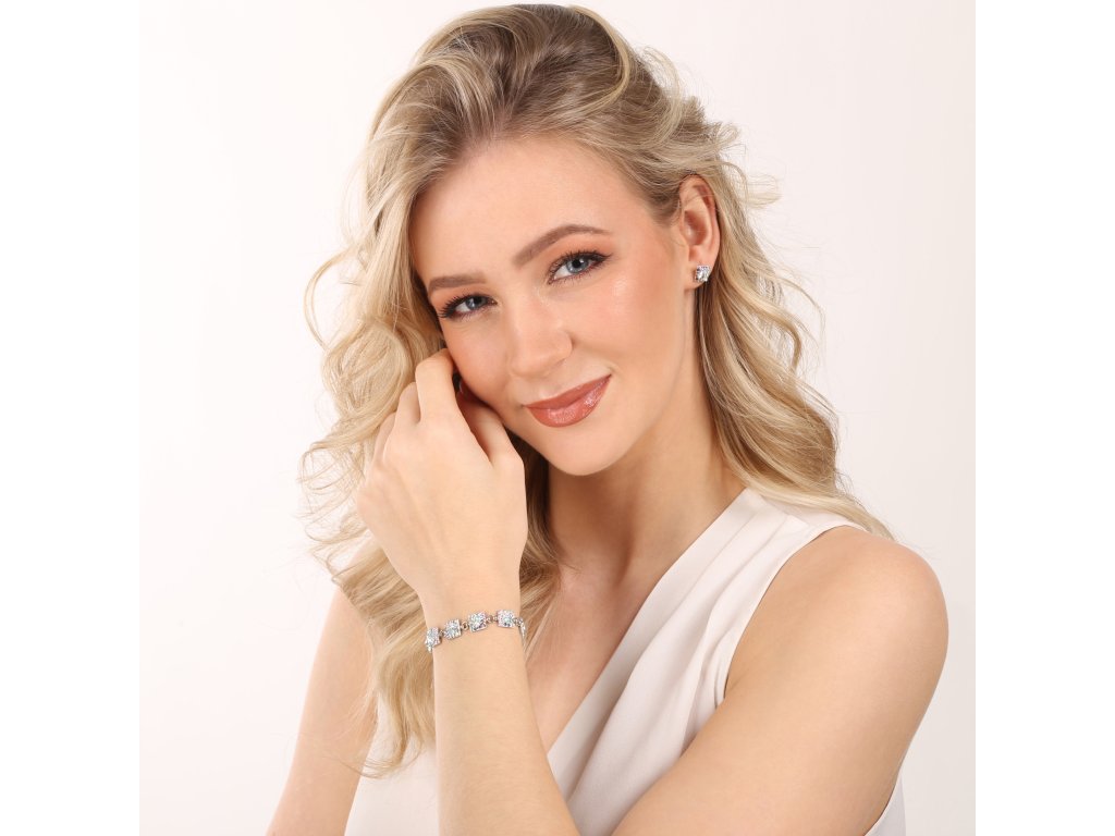 Tento elegantní stříbrný náramek se Swarovski krystaly je univerzální doplněk, který dokonale doplní váš outfit při mnoha příležitostech: